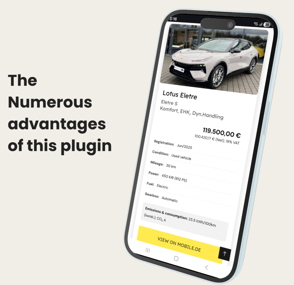A powerful WordPress plugin for displaying mobile.de vehicle listings on dealership websites.