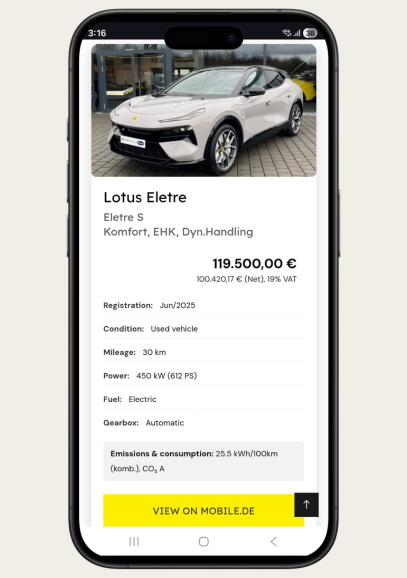 Keep vehicle listings automatically updated with the latest mobile.de data.
